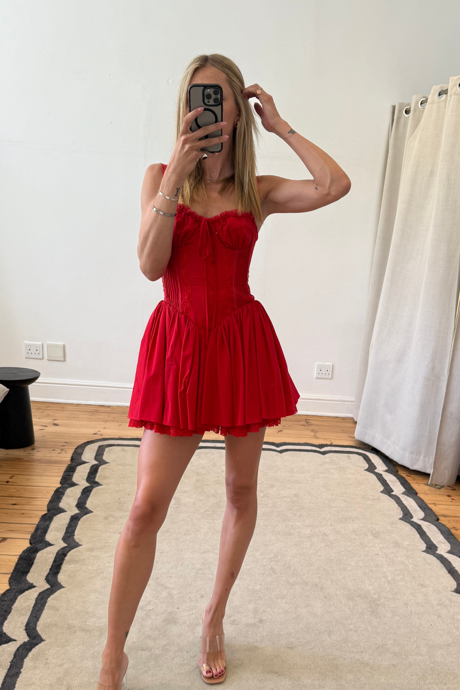 Chic, romantic, and effortlessly feminine, the Pietra Cherry Corset Mini Dress by House of CB is a standout piece designed to celebrate every curve. With its structured corsetry, sculpted bust, and rich cherry red hue, this dress embodies timeless elegance with a modern, sensual edge. Perfect for date nights, cocktail parties, or any occasion that calls for undeniable allure.