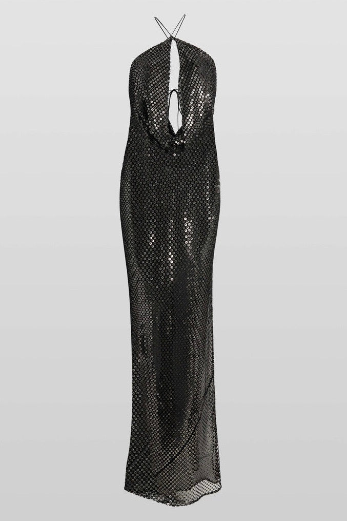 Dazzling and daring, The Solar Dress by Rat & Boa is a show-stopping piece that commands attention. Adorned with thousands of sunburst-shaped sequins, this dress catches the light from every angle, making you the center of any event. Its sultry silhouette and luxurious fabric make it the perfect choice for a night out or a special occasion.