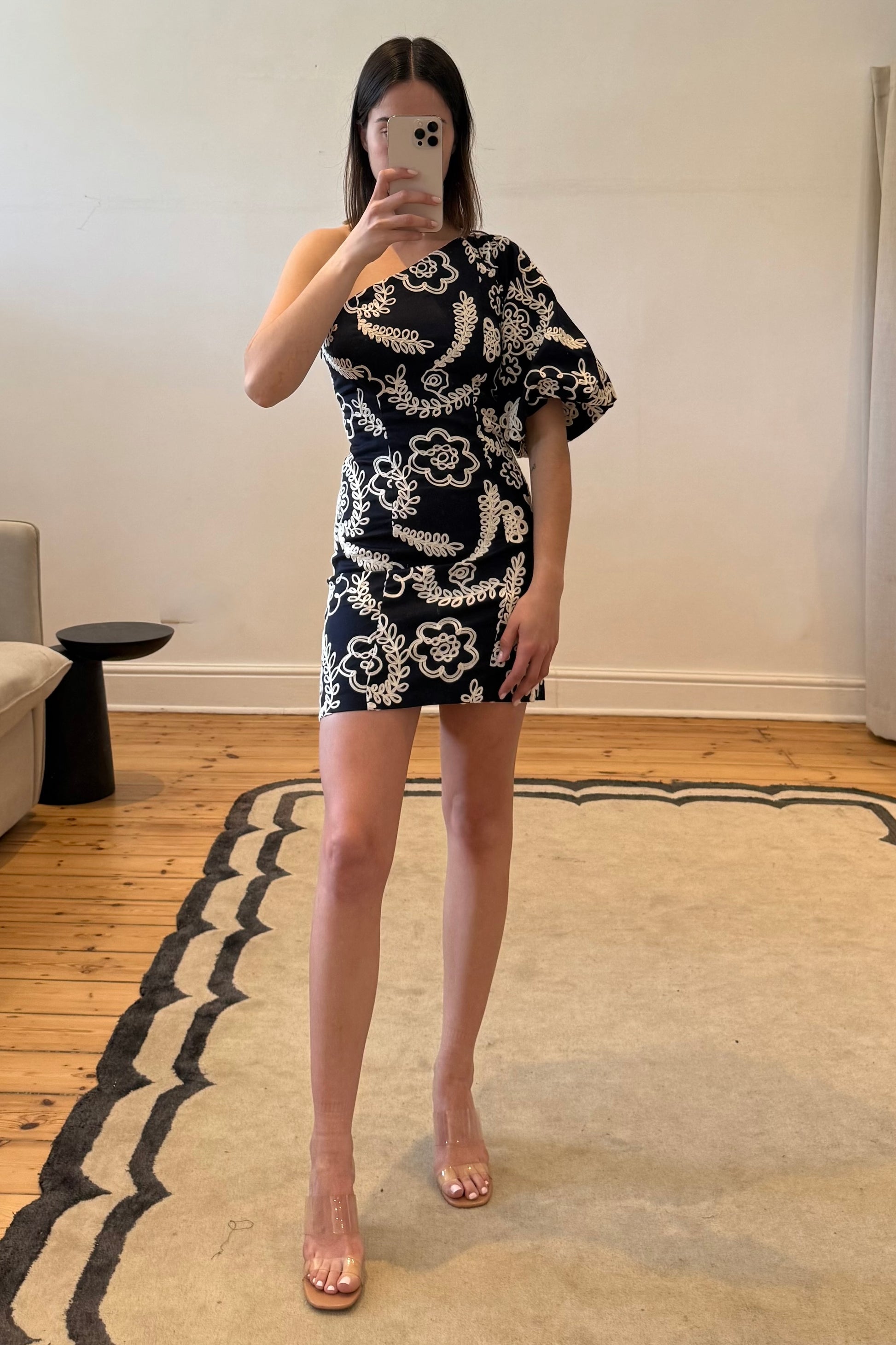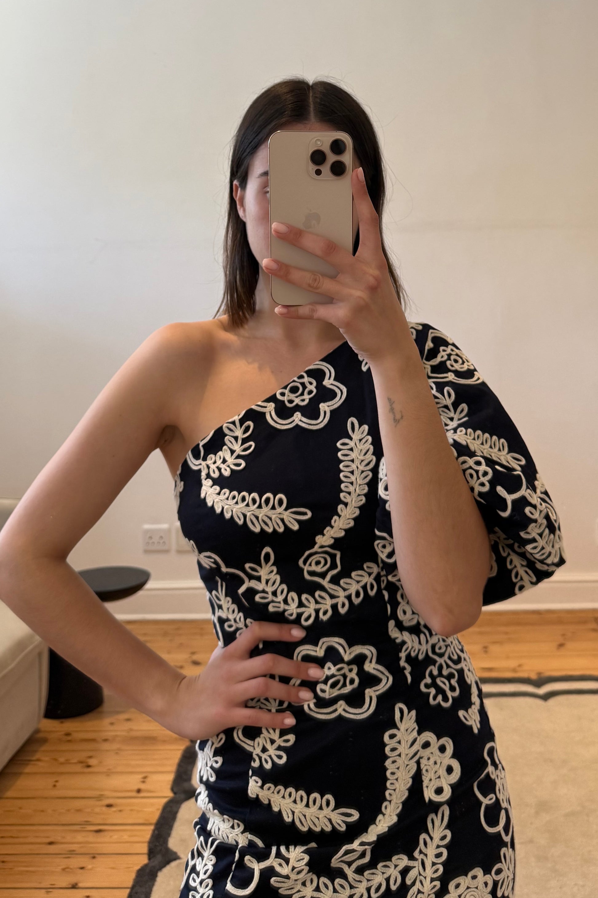 The Busi Embroidered One‑Shoulder Mini Dress by Poetry is a striking blend of artistic flair and contemporary edge. With its bold one‑shoulder design and intricate embroidery, this mini dress is made to stand out, whether you're off to a gallery opening, dinner with friends, or a chic rooftop event.