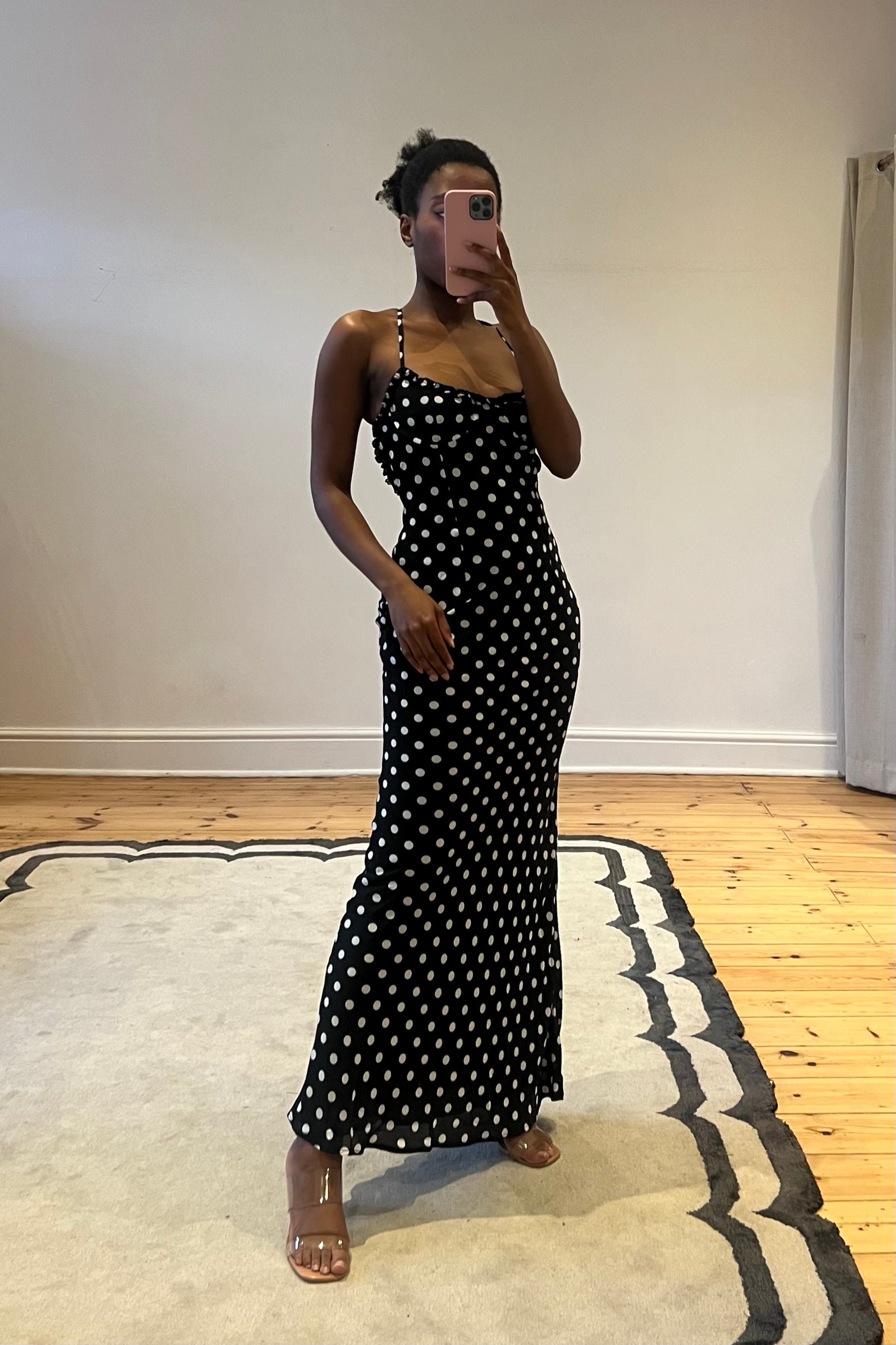 The Monet Maxi Dress by Runaway The Label brings playful elegance to any occasion with its classic polka dot print and effortlessly flattering silhouette. Whether you're headed to a summer wedding, a garden party, or a long lunch with the girls, this piece is made to move with you.