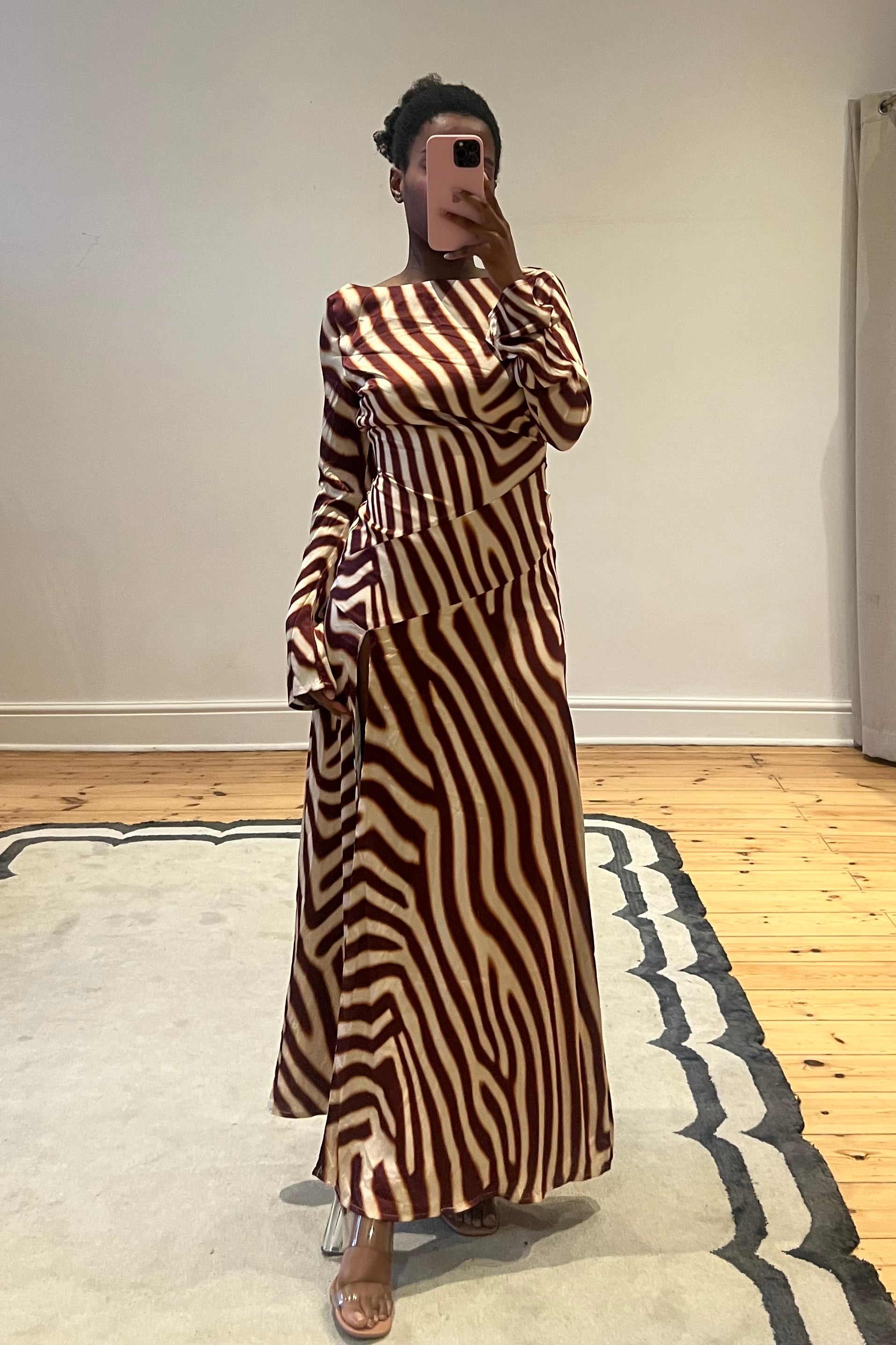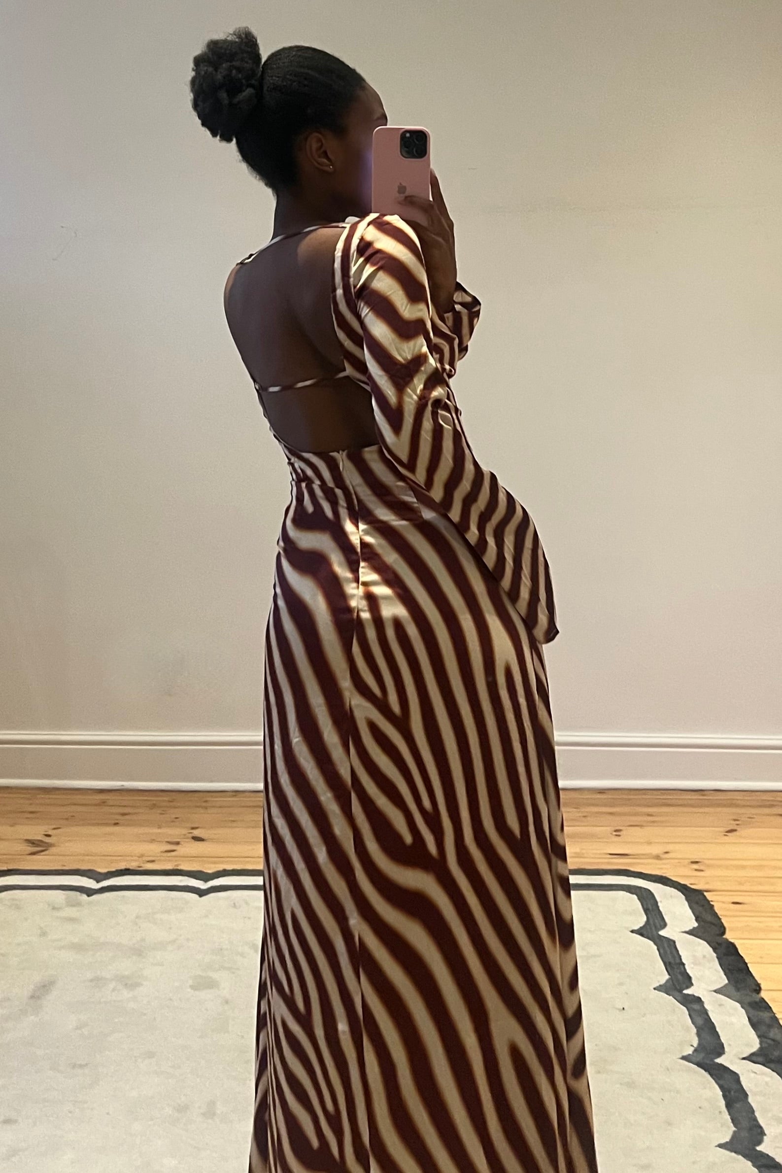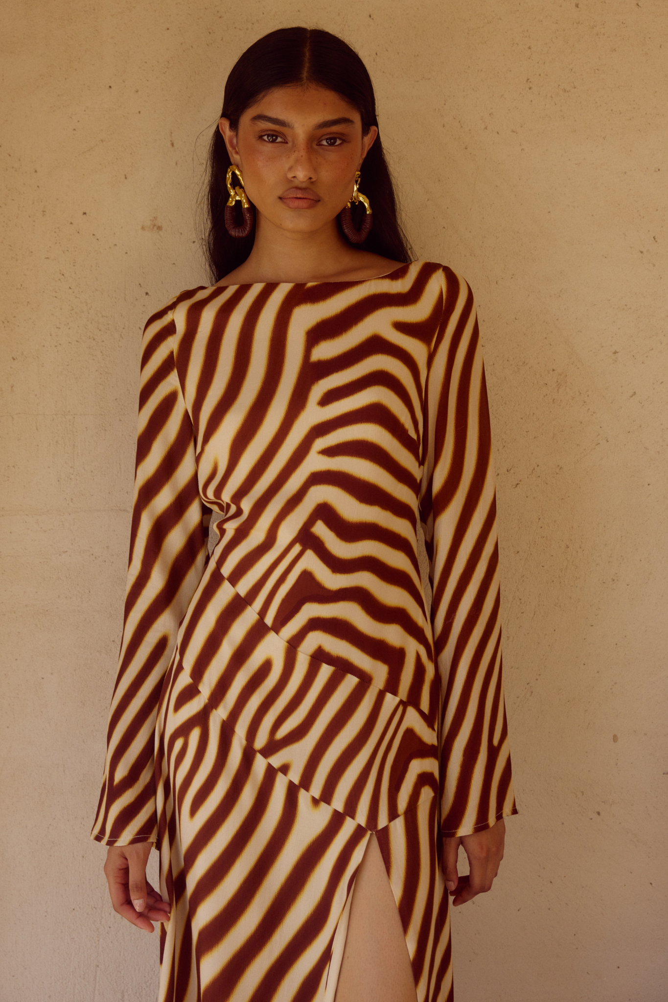 The Montie Sleeved Maxi Dress by Runaway The Label is refined minimalism with a bold edge, delivered in a rich Montie Choc shade. With its one-sleeve design and sleek silhouette, this dress is made for evenings that call for clean lines and confident styling.